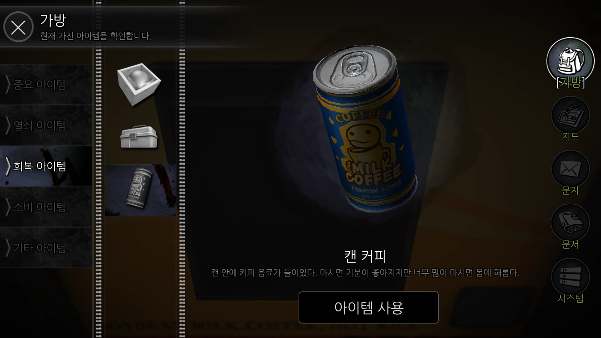 Coffee Cans (Hangul: 캔 커피) or Canned Coffee, is a health recovery item that can be bought at Vending Machines that sell them around Yeondu Highschool.