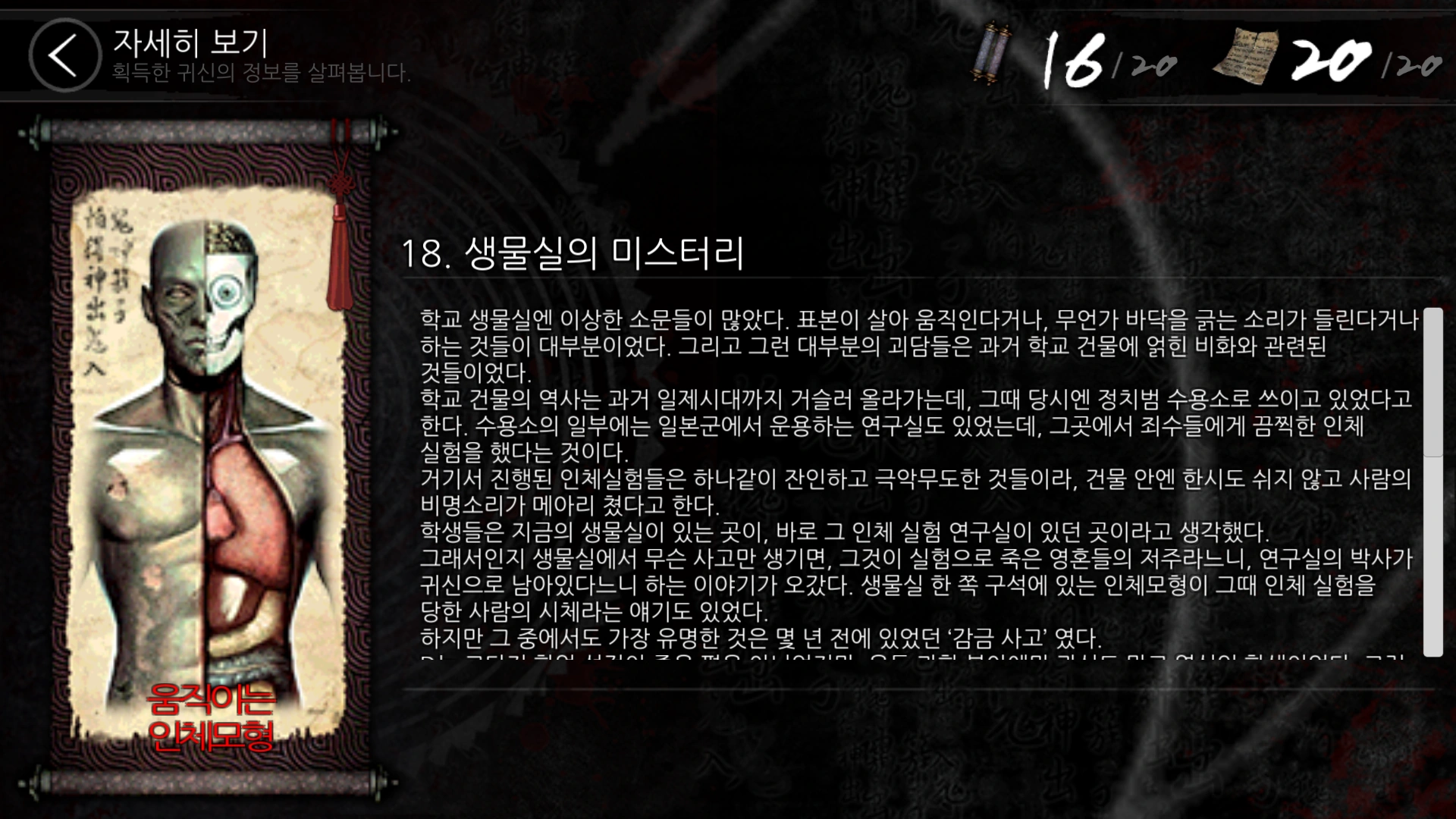 The Mannequin is a human-like doll (Statue/Mannequin) used for Anatomy studies. It is in the science lab on the fourth floor of the second building in Yeondu Highschool.