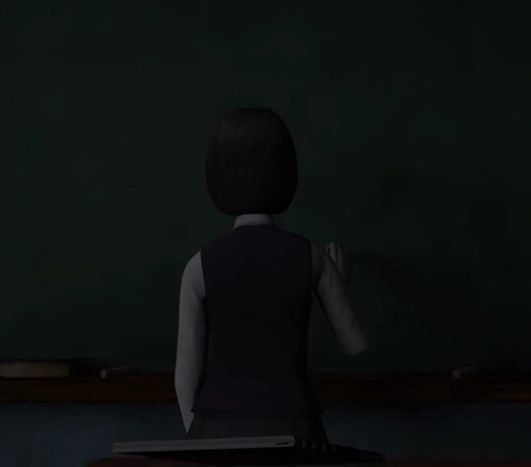 She has a texture that was found hidden in the game, however she is not seen in-game at any point. Only the sound of writing on the chalkboards around the school can be heard.