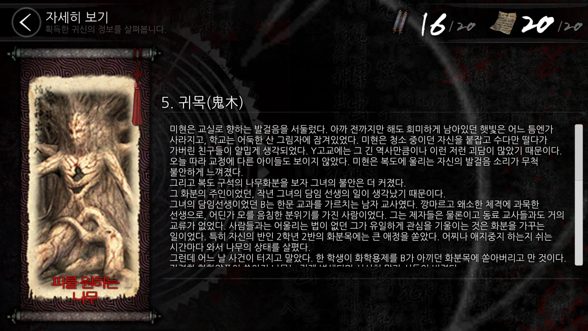 The Tree Ghost (나무귀신 / 귀목 namugwisin / gwimog), Also known as Ghost Tree, Laughing Tree, or Demon Tree, is the first boss encountered in White Day Remake in the main building of Yeondu Highschool.