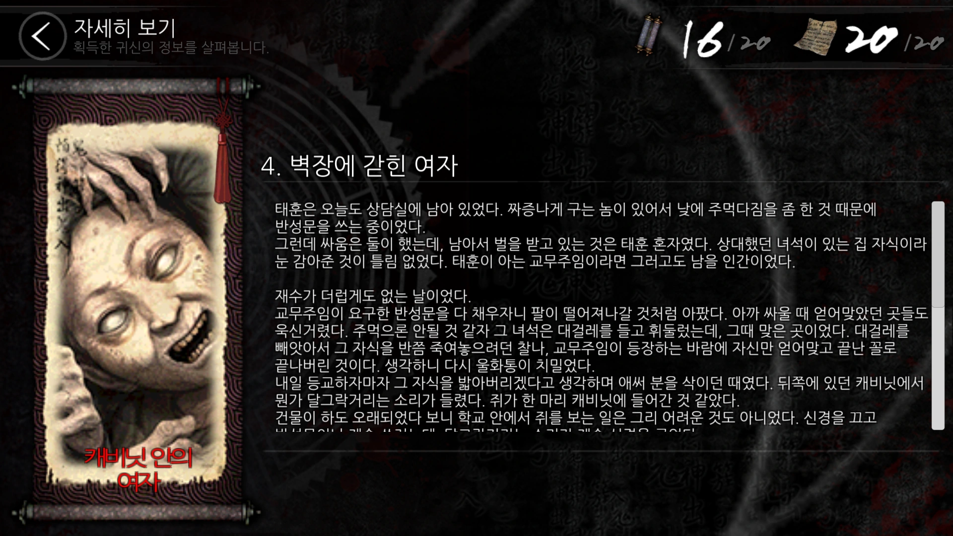 - Early on, the woman in the closet was confused with Lunch Lady's Head and Lunch Lady was confused with Mi-suk (who was being linked by people to Ghost story 4 and 9) But Mi-suk is the girl that got her face burned, Lunch Lady is the one that lost her head and The woman in the closet (as the name states) is the one that was sealed into a closet of bricks.
